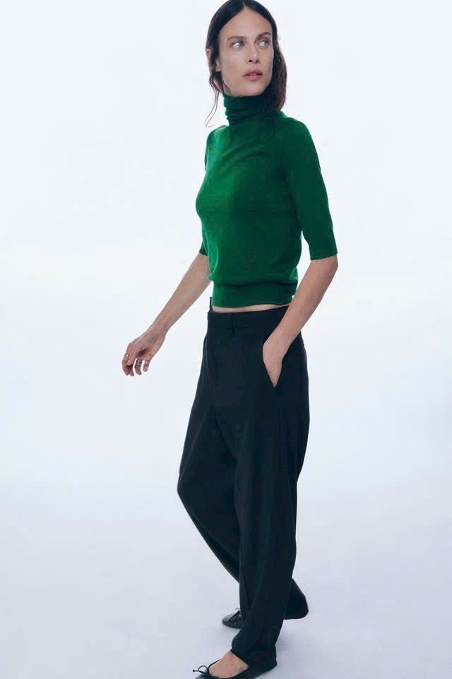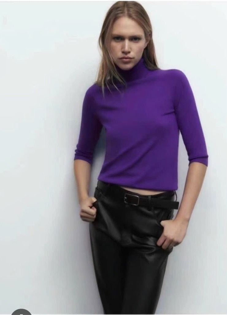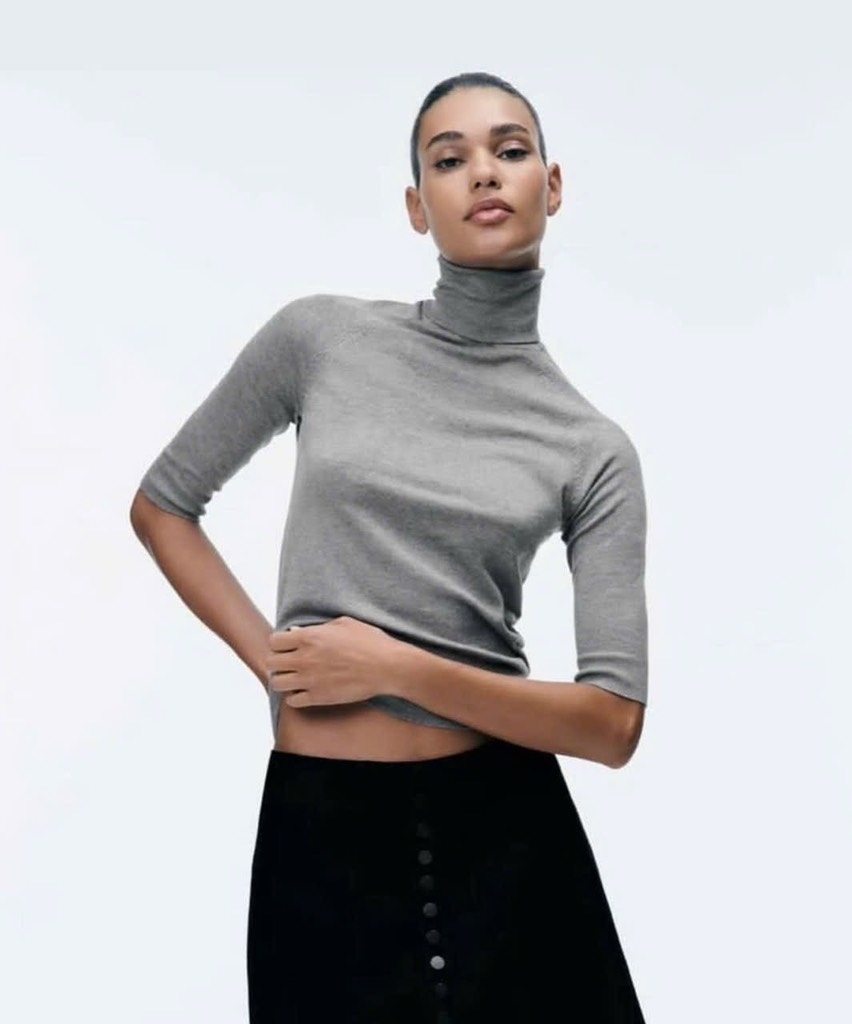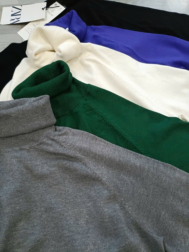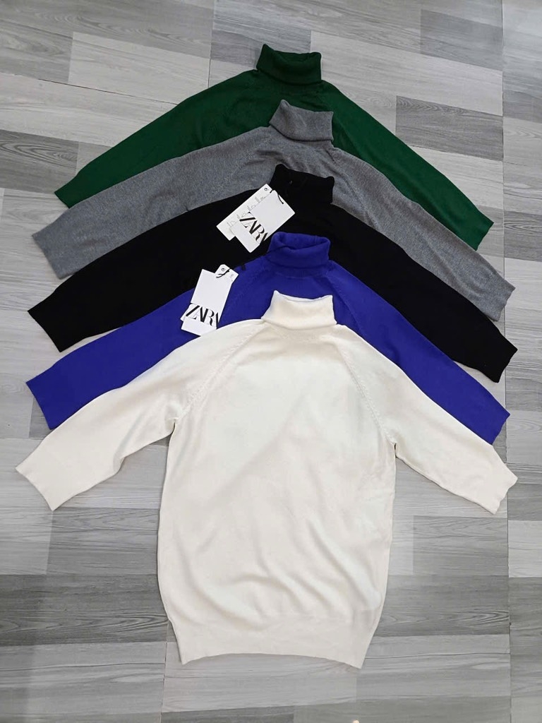 Áo len mongtoghi nữ Zr với sợi len mềm mại, co giãn, mặc thích vô cùng. Áo form ôm tay lửng, cổ cao ôm sát.