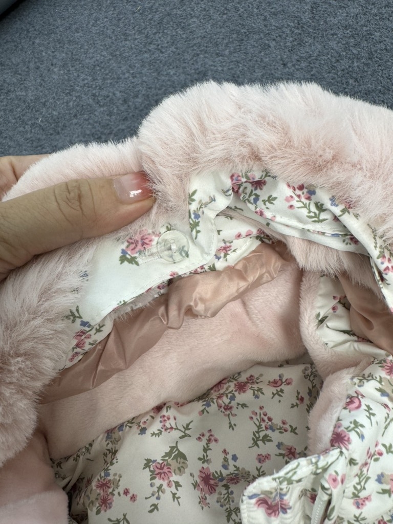 Hàng công ty thiếu phụ liệu nên một số bị thay khoá. Mũ lông có 2 màu hồng.
