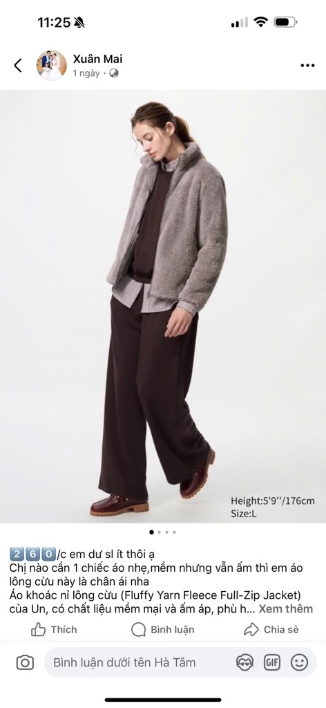 Áo khoác lông cừu nữ Uny nối chuyền. Dòng này năm nào cũng hot. Áo nhẹ nhàng, mặc nhà hay ra ngoài đều rất okla.