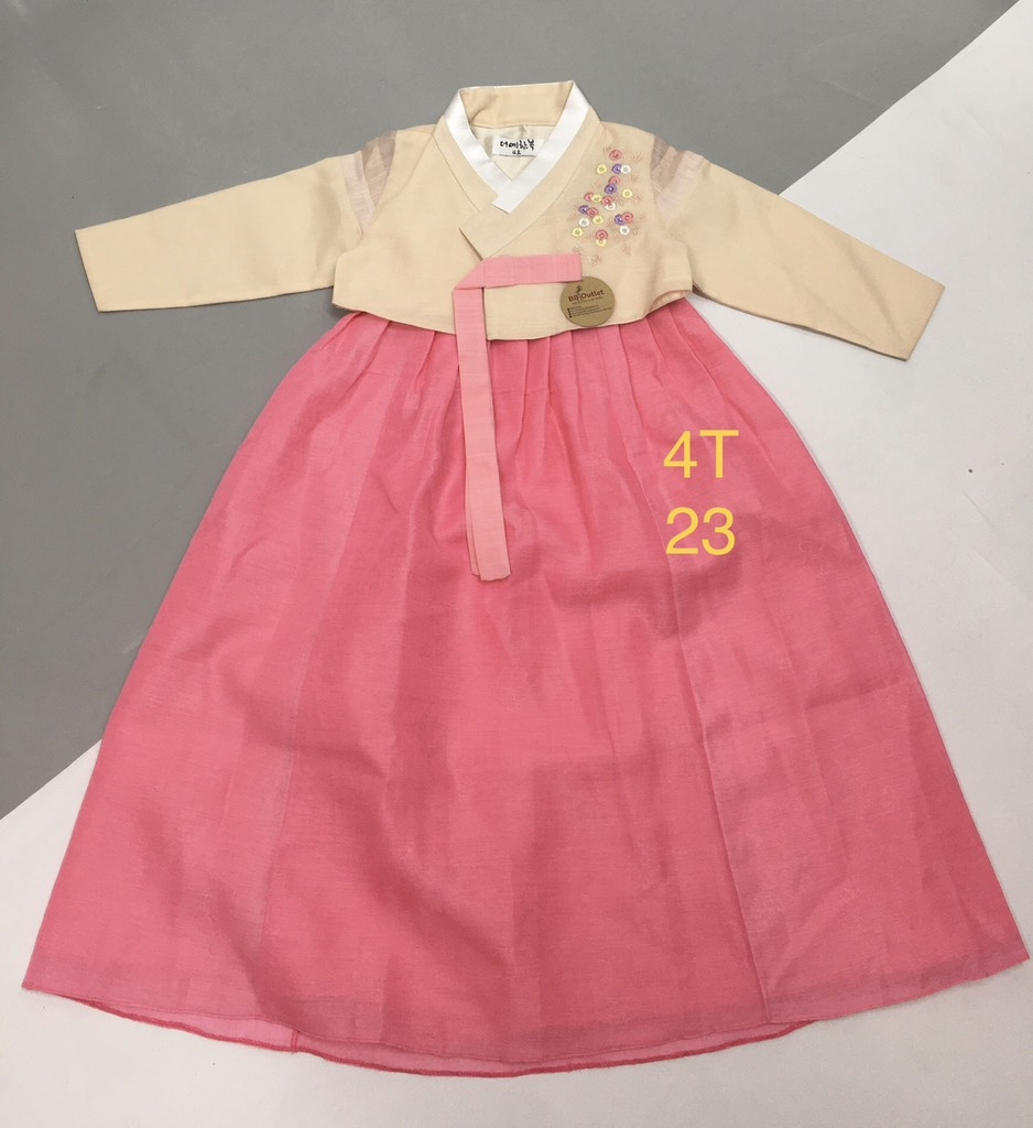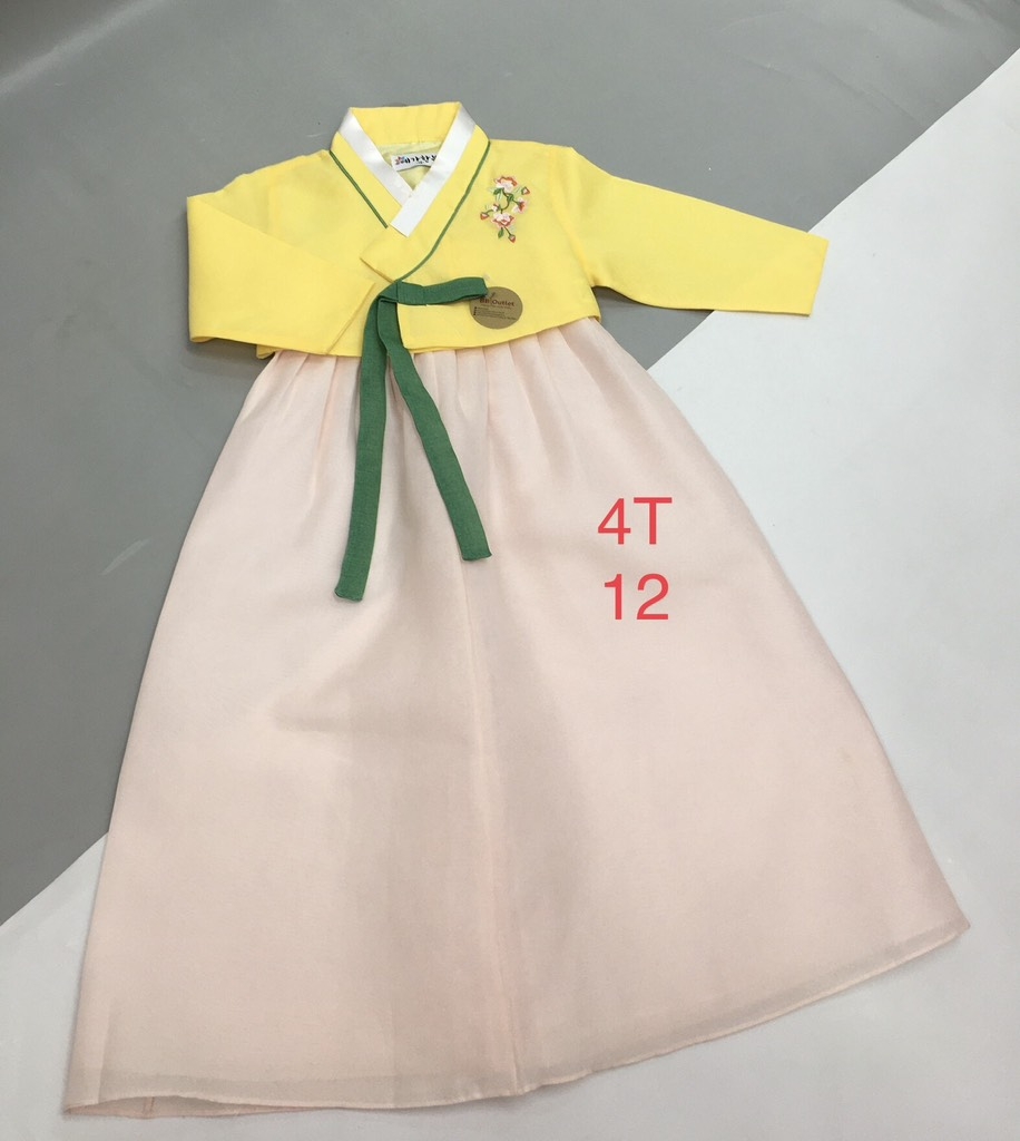 Hanbok xuất Hàn Made in Vietnam xuất khẩu xịn. Toàn bộ phối màu là may đáp nối vải, không phải hàng in màu rẻ tiền. Hình thêu nổi sắc nét.