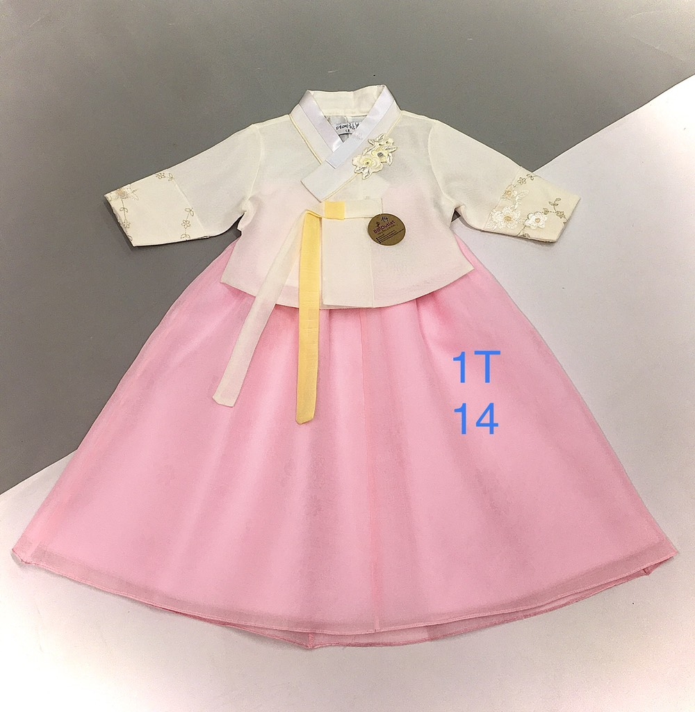 Hanbok xuất Hàn Made in Vietnam xuất khẩu xịn. Toàn bộ phối màu là may đáp nối vải, không phải hàng in màu rẻ tiền. Hình thêu nổi sắc nét.