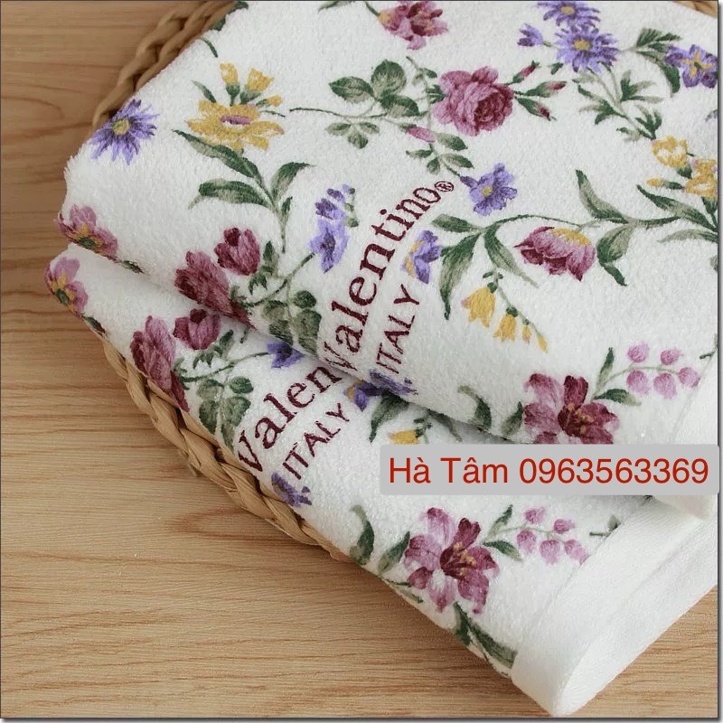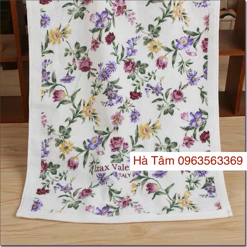 Khăn tắm Nhật 60*120cm về màu trắng hoa tím xinh yêu.
