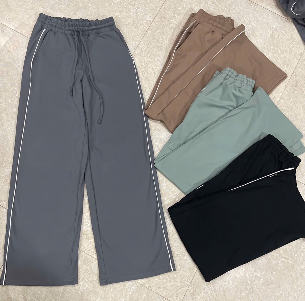 Quần nỉ nữ 90 độ ống suông. Vải nỉ thun mặt ngoài trơn mượt, mặt trong bông nhẹ. Hãng chuyên đồ tập nên vải co giãn thoải mái mà không lo bai dão.